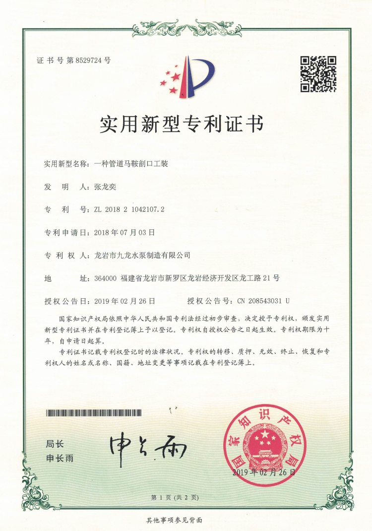 管道馬鞍剖口工裝實用新型專利證書
